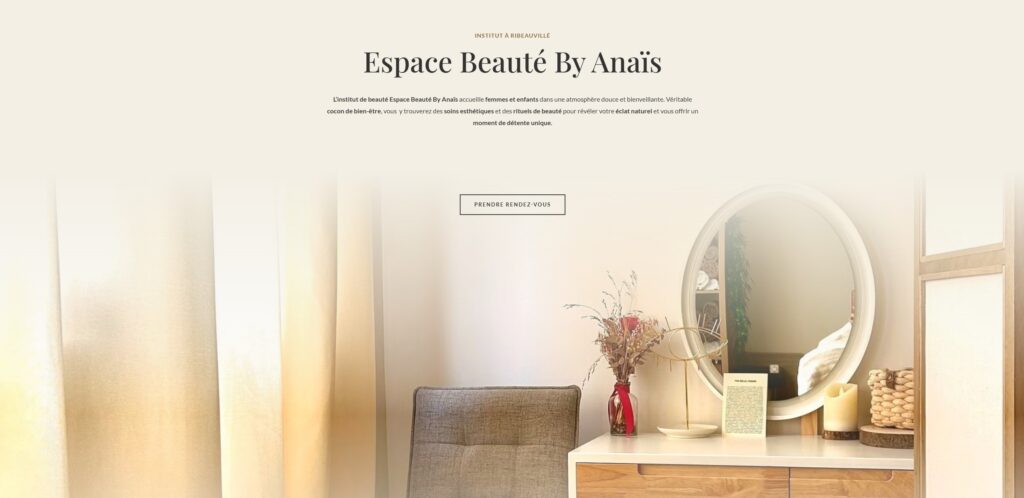 Réalisation d’un site vitrine One Page sous WordPress avec Divi pour Espace Beauté by Anaïs, un institut de beauté situé en Alsace.